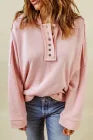 Pink Casual Button Solid Patchwork Trim Hoodie